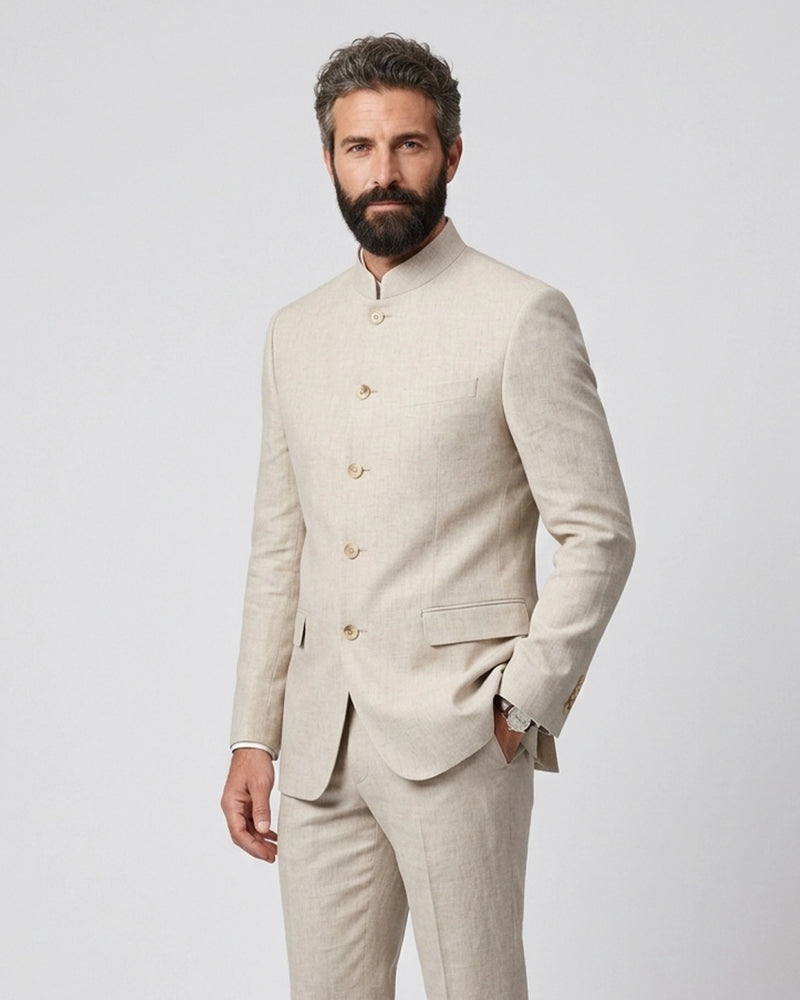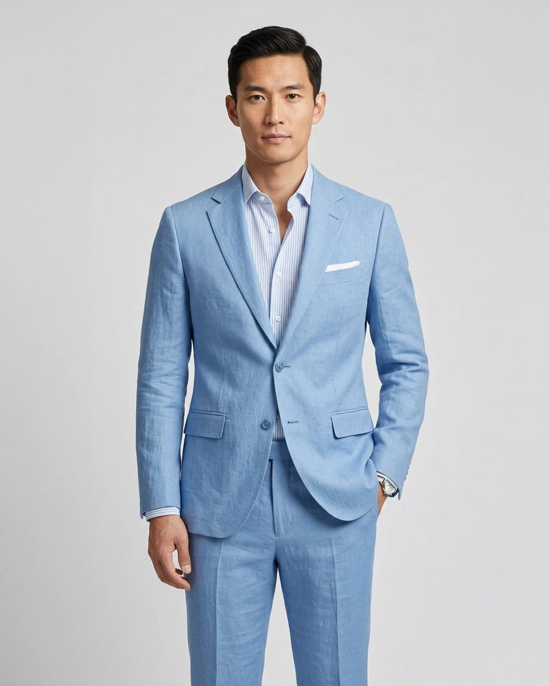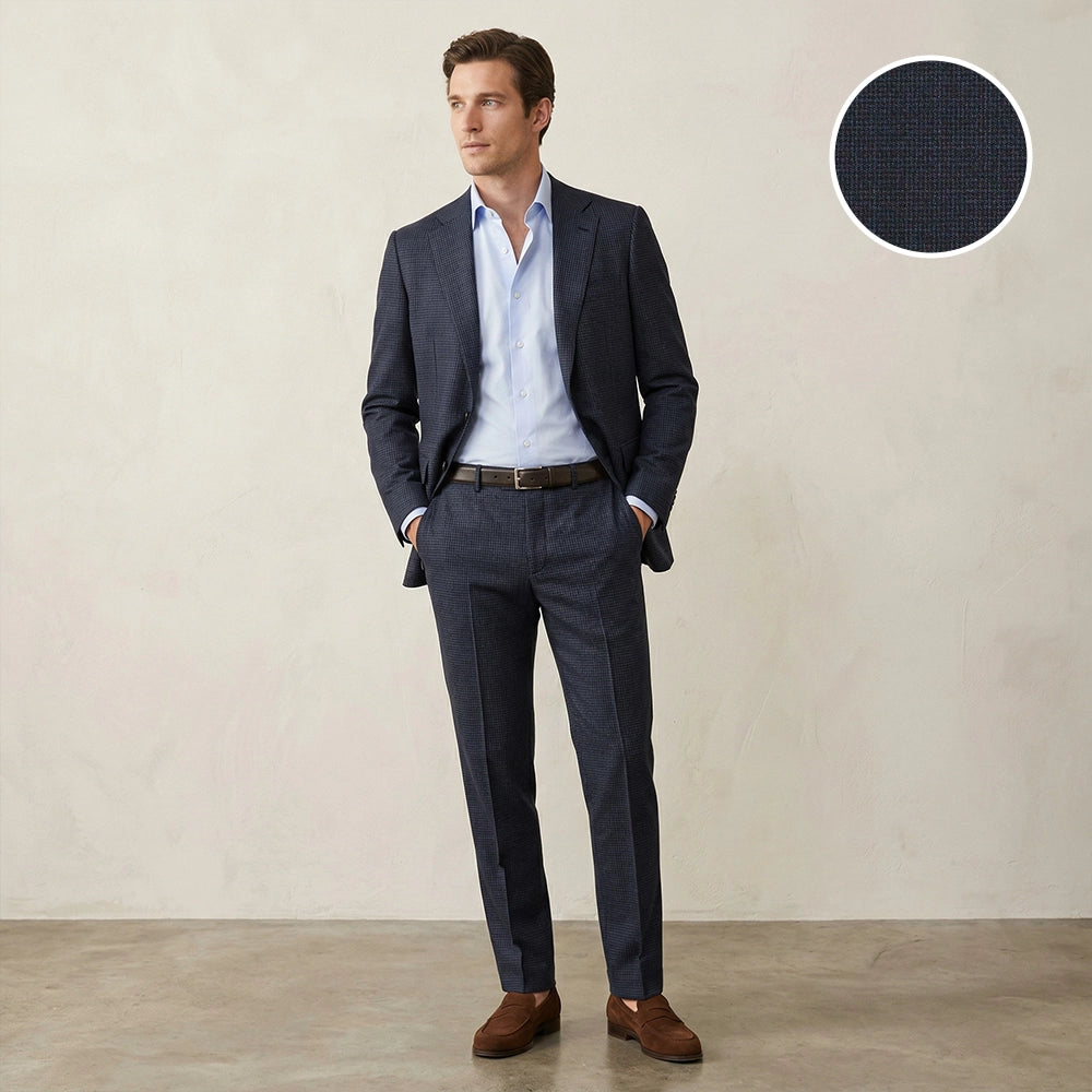 Premium Mill Fabrics: Italian wool, luxury linen, and performance-forward suiting for every season.