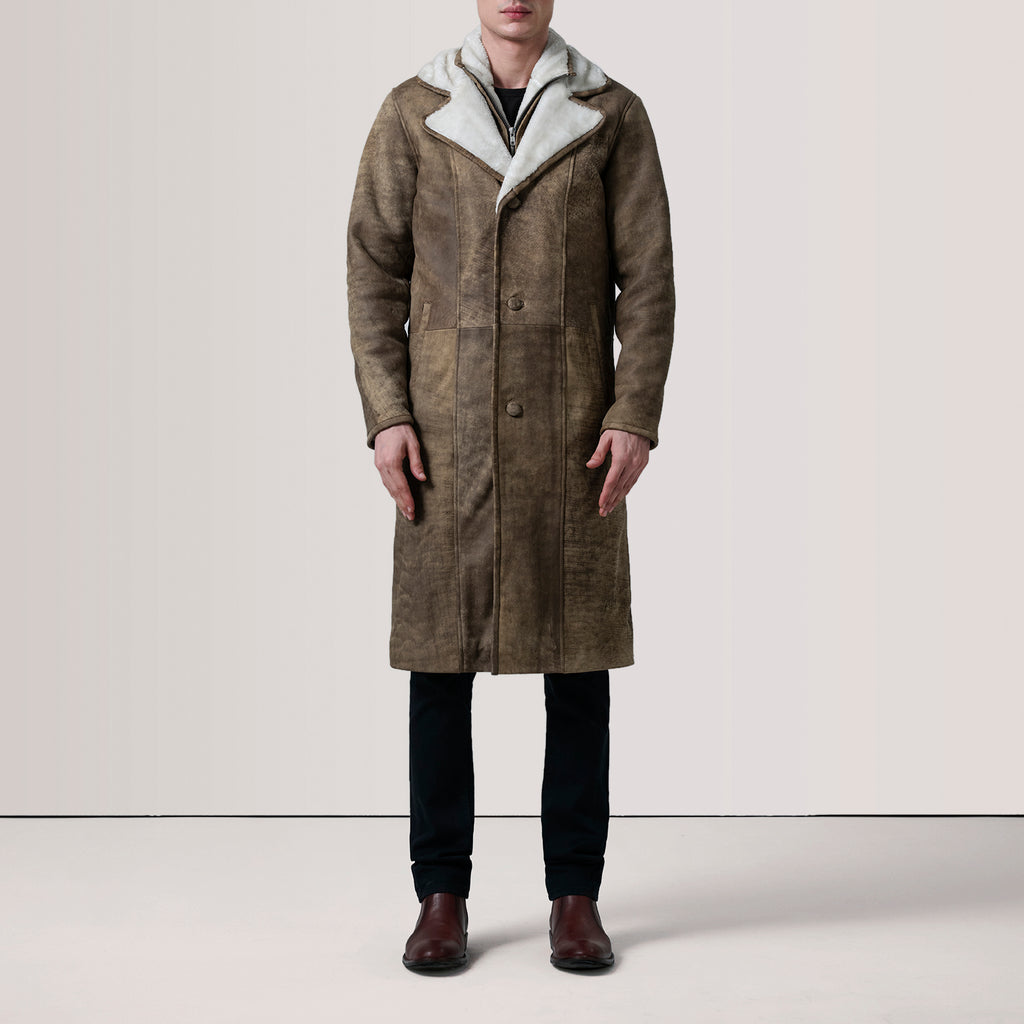Cai Distressed Brown Leather Shearling Coat