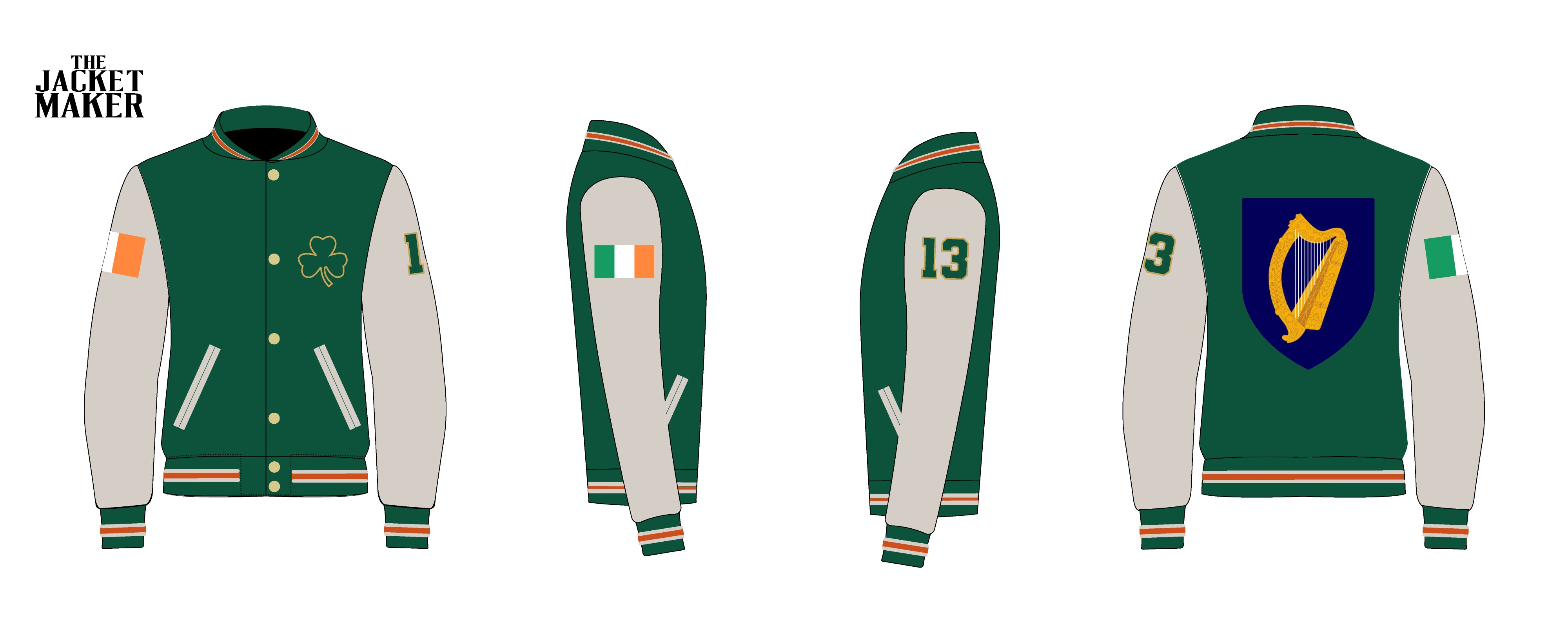 • Collar Style: Striped elasticated green rib knit collar with white & orange stripes (as per reference & illustration)