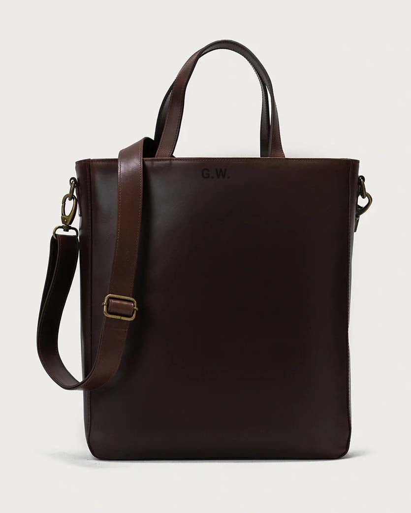 Poet Vintage Brown Leather Tote Bag with the customizations you’ve outlined:
