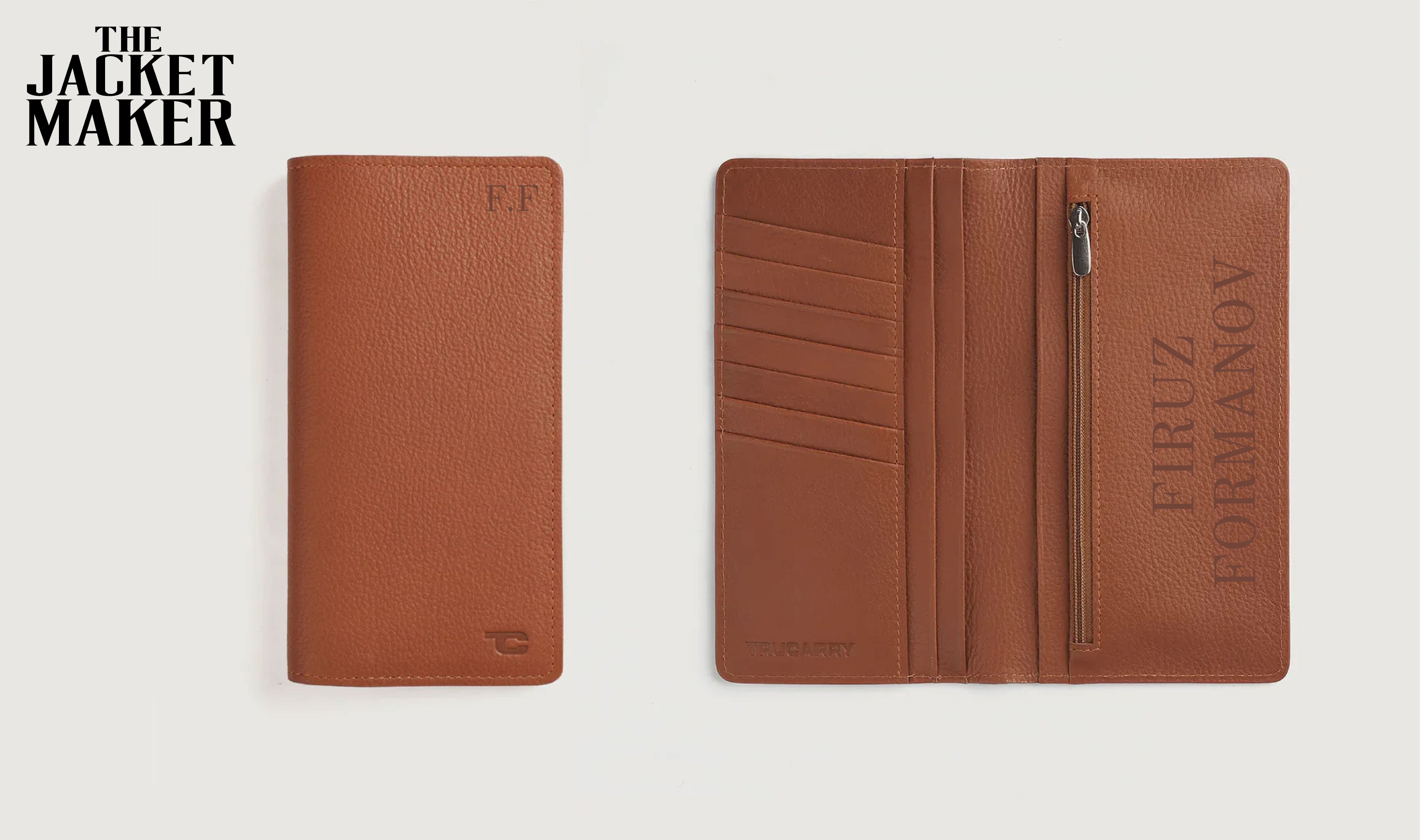 The Cameron Brown Leather Long Wallet with the customizations you’ve outlined:
