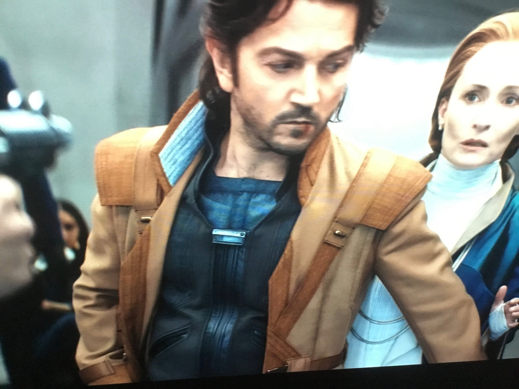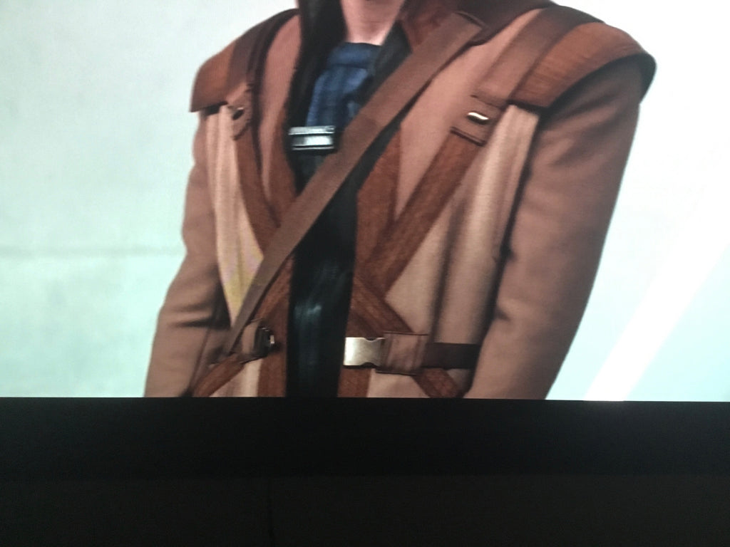 • Brown suede piping across the front torso in cross shape, and back torso (as per mock & references)