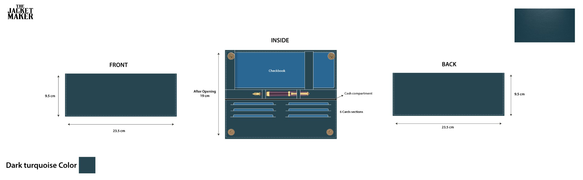 • One checkbook holder holding a 20 cm long checkbook (as per mock)