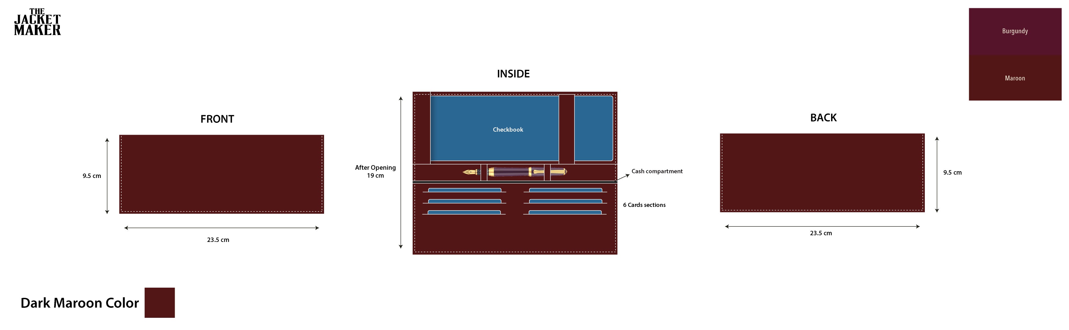 • Color: Dark maroon and turquoise blue (as per mock)