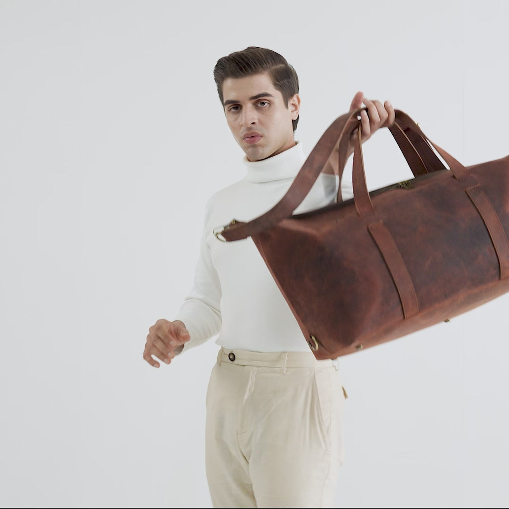 The Dale Duffle Vintage Distressed Brown Leather Duffle Bag