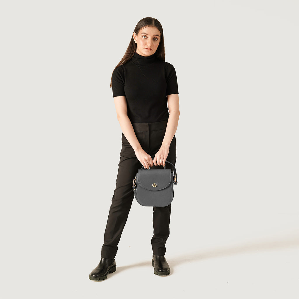 The Sandra Grey Leather Saddle Bag